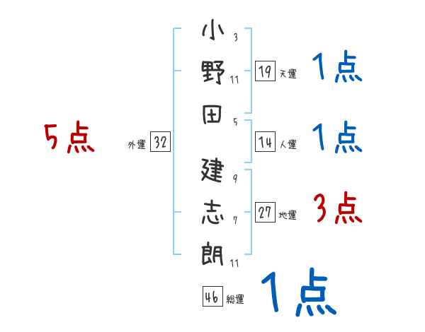 小野田建志朗さんの画数の鑑定結果