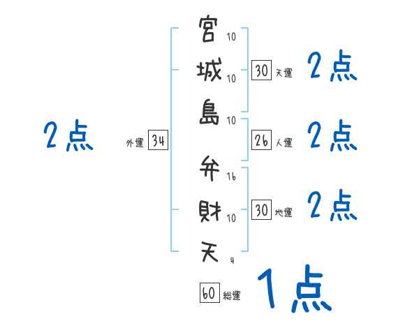 宮城島弁財天さんの画数の鑑定結果
