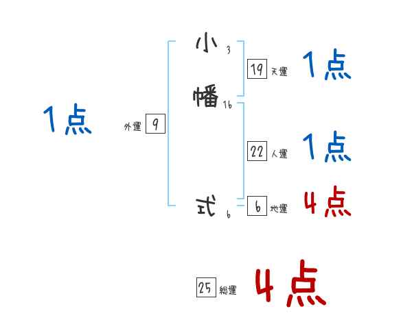 小幡式さんの総運は25画の4つ星