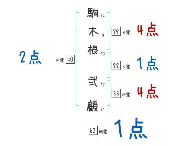 駒木根弐顧さんの画数の鑑定結果