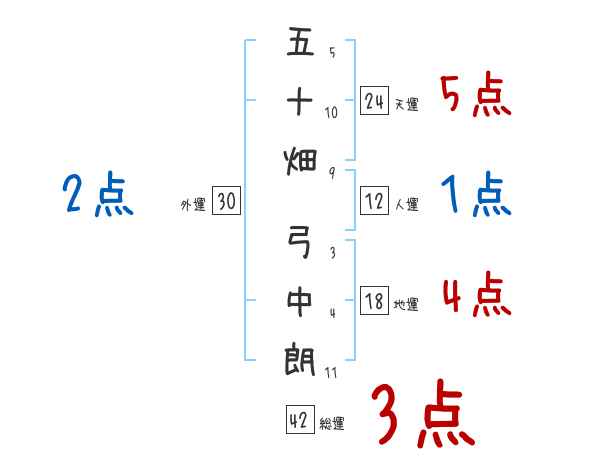 総運![]() | 五十畑弓中朗さんの総運は42画の3つ星!病気に注意。多芸であるが消極的でおとなしい。 あなたの人生を表す1番重要な運勢です。生涯を通じて影響する総合運となり、主に50歳以降の晩年期に影響を及ぼします。 |