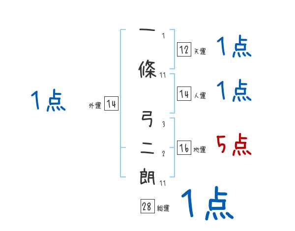 一條弓二朗さんの画数の鑑定結果