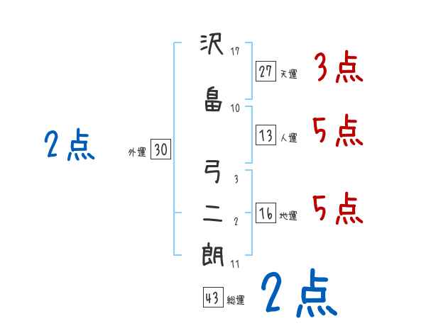 沢畠弓二朗さんの画数の鑑定結果