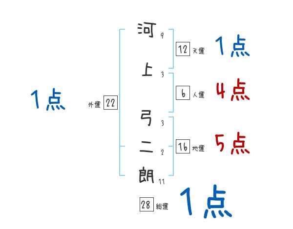 地運![]() | 河上弓二朗さんの地運は16画の5つ星!人望が厚く大きく発展する。逆転成功が見える。 個性を表す基礎的な運勢です。性格形成や対人関係、行動力など家庭環境に影響されます。主に誕生してから20歳くらいまでの若年期の運勢を表します。 |
