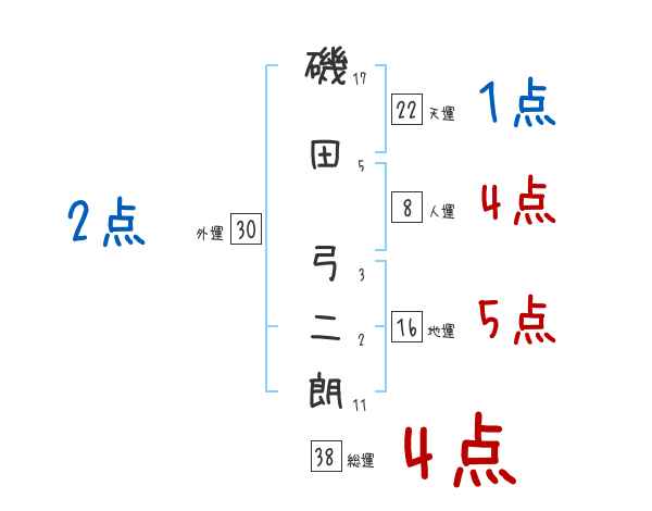磯田弓二朗さんの画数の鑑定結果