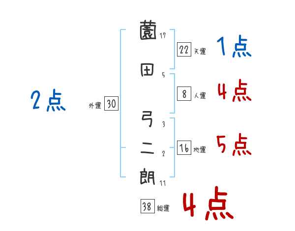 薗田弓二朗さんの画数の鑑定結果