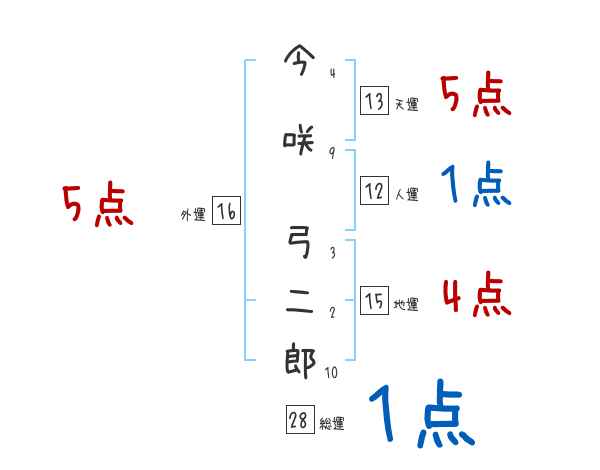 今咲弓二郎さんの画数の鑑定結果