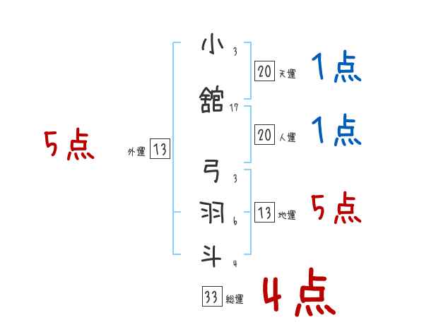 小舘弓羽斗さんの画数の鑑定結果