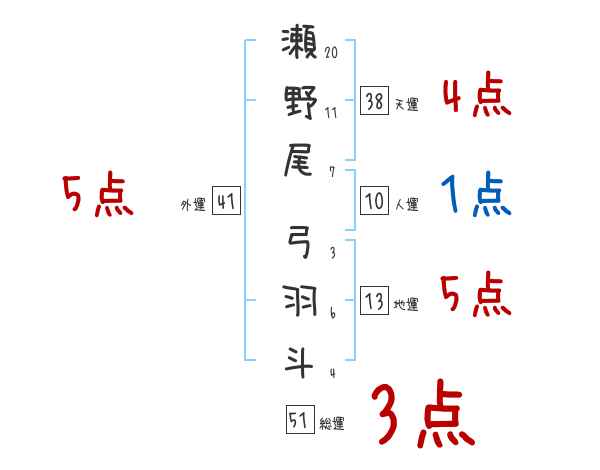 瀬野尾弓羽斗さんの画数の鑑定結果
