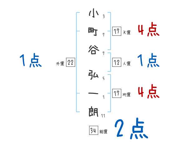 天運![]() | 小町谷弘一朗さんの天運は17画の4つ星!積極的な行動力。地位を気づき財産を手に入れる。純粋な心と直感力。 家系が持つ宿命的な運勢を表します。祖先から受け継いだ苗字ですので自分の力が及びません。家柄を象徴します。 |