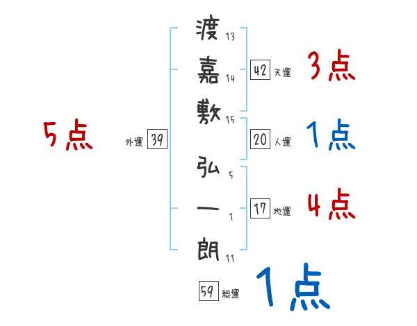 渡嘉敷弘一朗さんの画数の鑑定結果