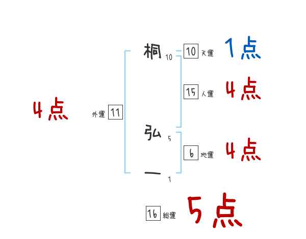 天運![]() | 桐弘一さんの天運は10画の1つ星!不安を感じやすい傾向。ストレスを抱えないように注意しましょう。 家系が持つ宿命的な運勢を表します。祖先から受け継いだ苗字ですので自分の力が及びません。家柄を象徴します。 |