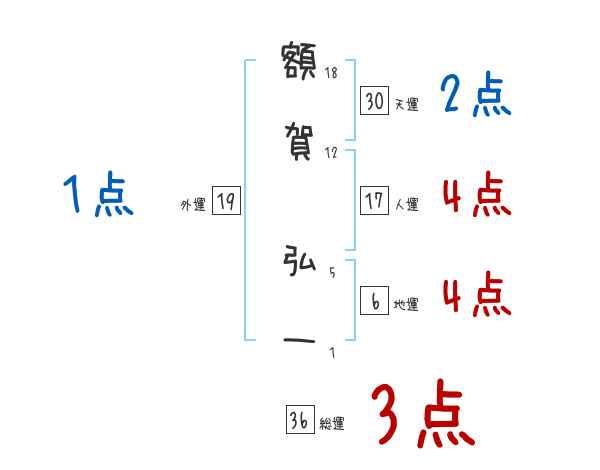 額賀弘一さんの画数の鑑定結果