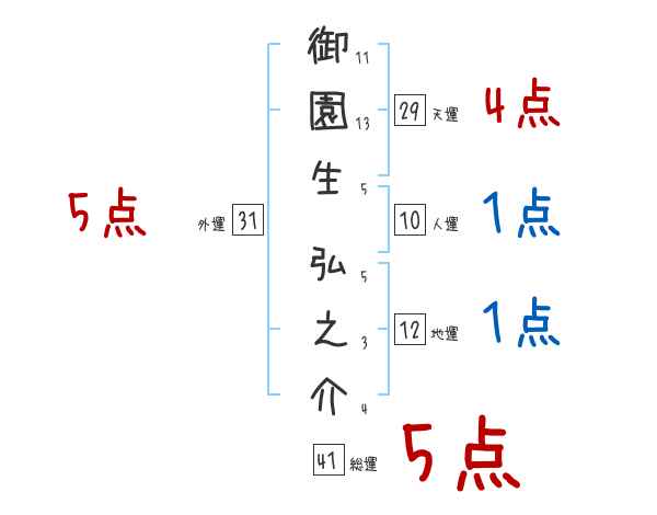 天運![]() | 御園生弘之介さんの天運は29画の4つ星!完全主義で才能がある。厳格な心の持ち主。 家系が持つ宿命的な運勢を表します。祖先から受け継いだ苗字ですので自分の力が及びません。家柄を象徴します。 |