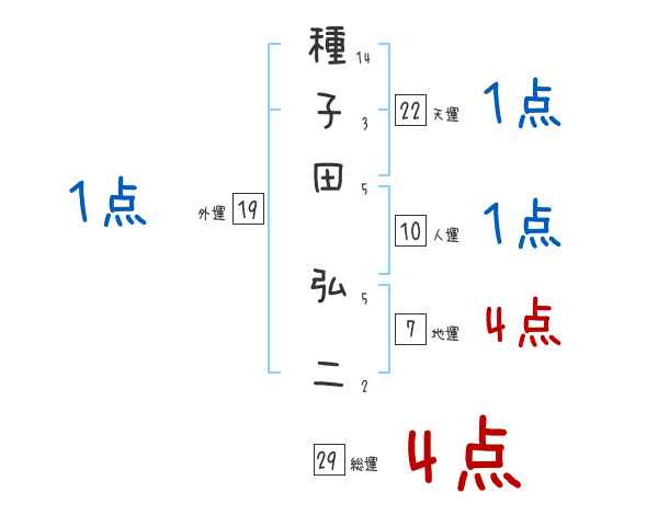 種子田弘二さんの画数の鑑定結果