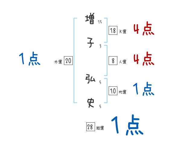 天運![]() | 増子弘史さんの天運は18画の4つ星!情熱的で剛気。忍耐力があり信頼される。 家系が持つ宿命的な運勢を表します。祖先から受け継いだ苗字ですので自分の力が及びません。家柄を象徴します。 |