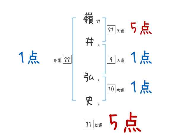 嶺井弘史さんの画数の鑑定結果