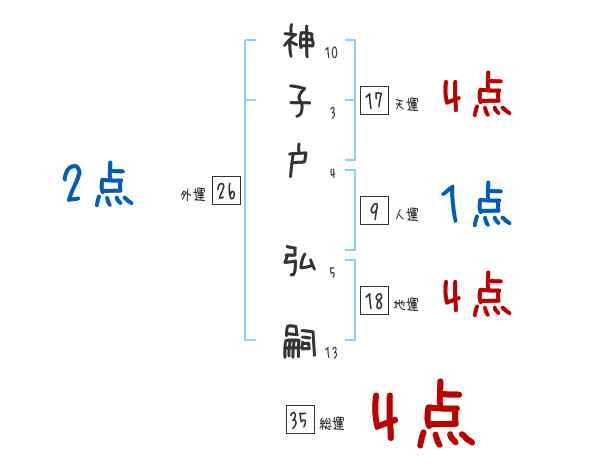 神子戸弘嗣さんの画数の鑑定結果