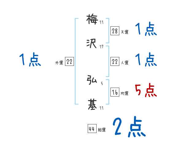梅沢弘基さんの画数の鑑定結果