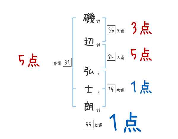 磯辺弘士朗さんの総運は55画の1つ星