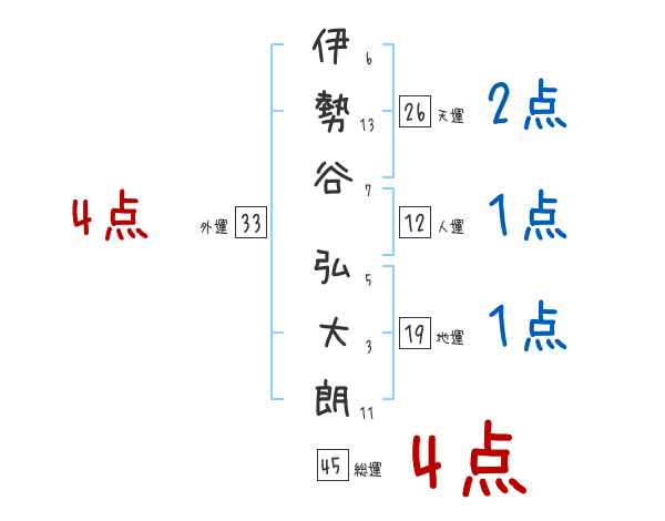外運![]() | 伊勢谷弘大朗さんの外運は33画の4つ星!権力志向でプライドが高い。勇気があり運を切り開き成功する。 生活面を象徴する運勢です。外部から受ける影響力を表し、結婚運、家庭運や職場、環境への順応性を表します。 |