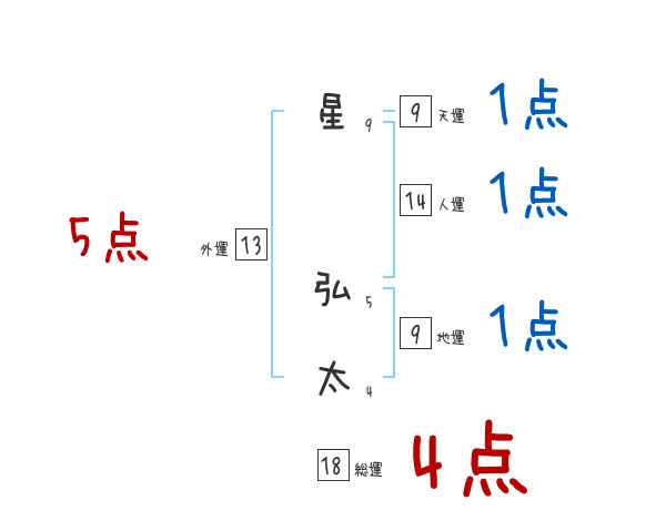 星弘太さんの画数の鑑定結果
