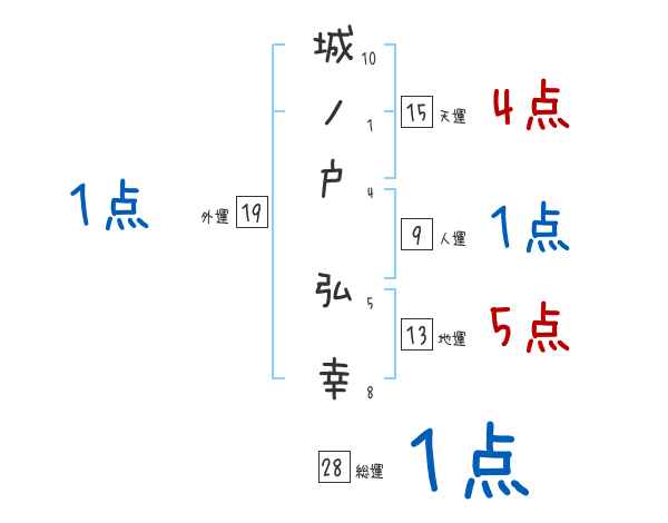 天運![]() | 城ノ戸弘幸さんの天運は15画の4つ星!人徳があり出世する。順調に物事を進め円満な人生。 家系が持つ宿命的な運勢を表します。祖先から受け継いだ苗字ですので自分の力が及びません。家柄を象徴します。 |
