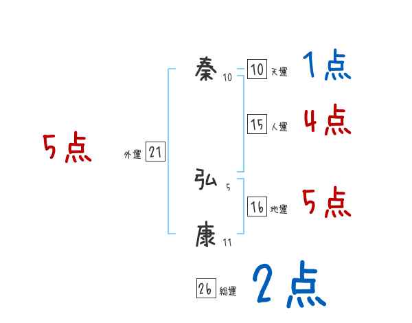 天運![]() | 秦弘康さんの天運は10画の1つ星!不安を感じやすい傾向。ストレスを抱えないように注意しましょう。 家系が持つ宿命的な運勢を表します。祖先から受け継いだ苗字ですので自分の力が及びません。家柄を象徴します。 |