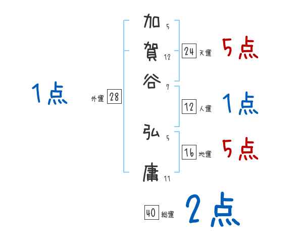 加賀谷弘庸さんの画数の鑑定結果