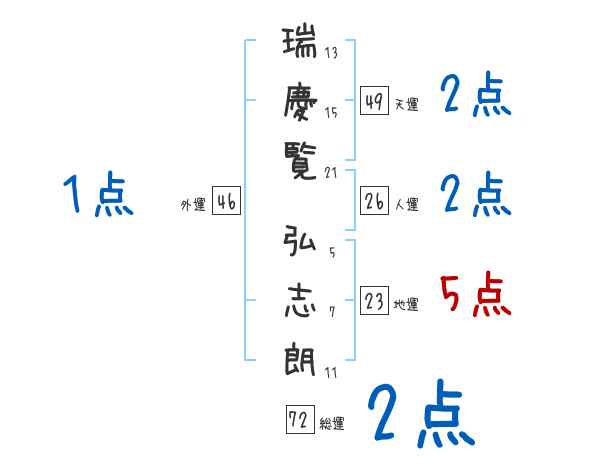 瑞慶覧弘志朗さんの画数の鑑定結果