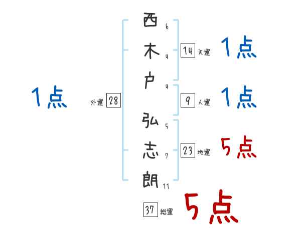 西木戸弘志朗さんの画数の鑑定結果