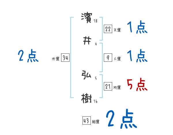 濱井弘樹さんの画数の鑑定結果