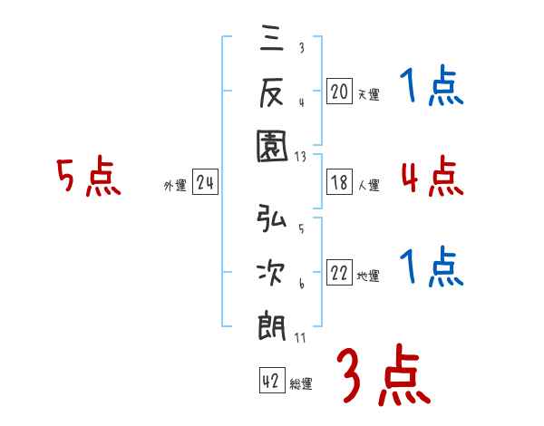 外運![]() | 三反園弘次朗さんの外運は24画の5つ星!家庭運が良く順調な人生。金運にも恵まれる。 生活面を象徴する運勢です。外部から受ける影響力を表し、結婚運、家庭運や職場、環境への順応性を表します。 |