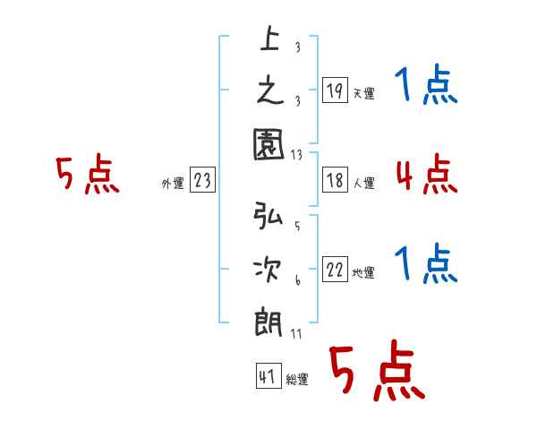 上之園弘次朗さんの画数の鑑定結果