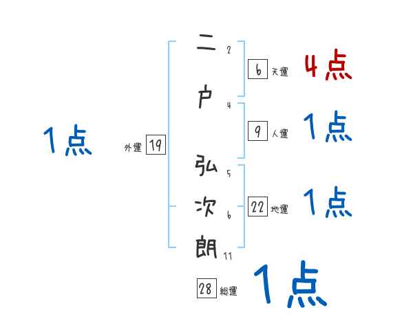 二戸弘次朗さんの画数の鑑定結果