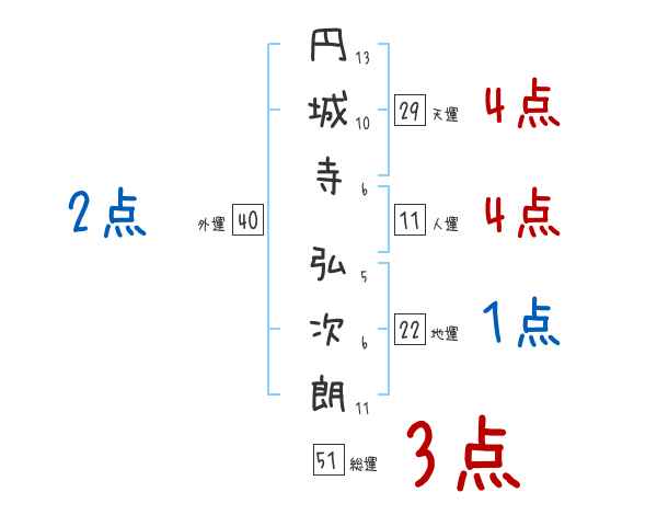 家系が持つ宿命的な運勢を表します。祖先から受け継いだ苗字ですので自分の力が及びません。家柄を象徴します。