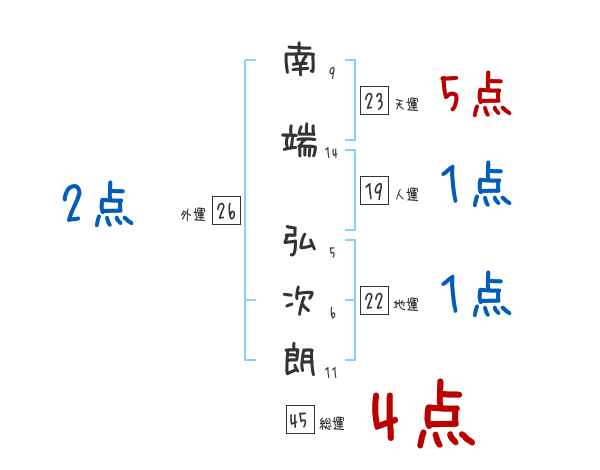 南端弘次朗さんの画数の鑑定結果
