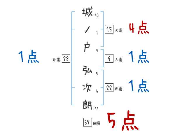天運![]() | 城ノ戸弘次朗さんの天運は15画の4つ星!人徳があり出世する。順調に物事を進め円満な人生。 家系が持つ宿命的な運勢を表します。祖先から受け継いだ苗字ですので自分の力が及びません。家柄を象徴します。 |