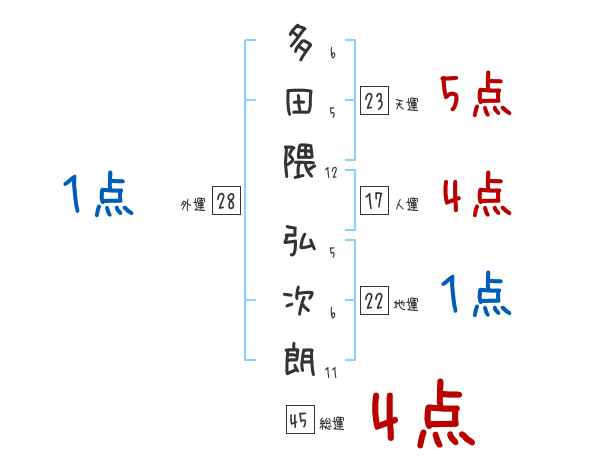 多田隈弘次朗さんの画数の鑑定結果