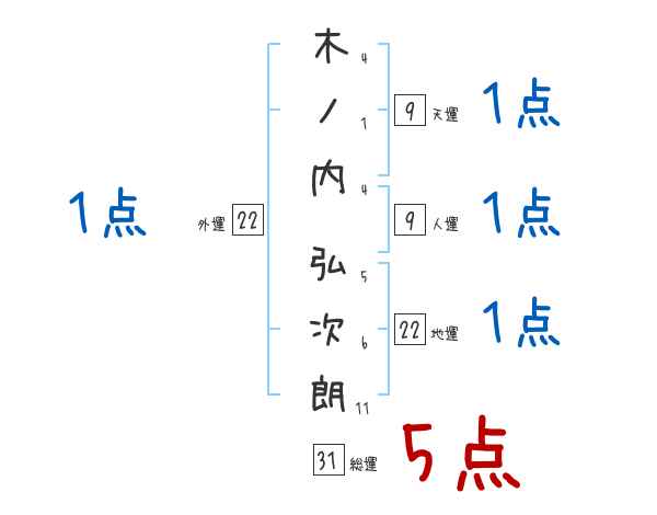木ノ内弘次朗さんの画数の鑑定結果