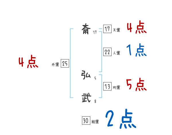 斎弘武さんの画数の鑑定結果