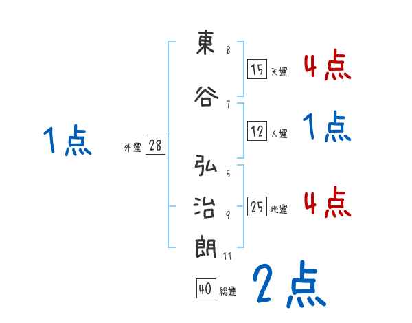 天運![]() | 東谷弘治朗さんの天運は15画の4つ星!人徳があり出世する。順調に物事を進め円満な人生。 家系が持つ宿命的な運勢を表します。祖先から受け継いだ苗字ですので自分の力が及びません。家柄を象徴します。 |