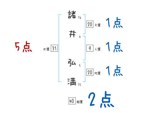 外運![]() | 諸井弘満さんの外運は31画の5つ星!社交性があり判断力に優れる。順風満帆な人生で円満な生活。 生活面を象徴する運勢です。外部から受ける影響力を表し、結婚運、家庭運や職場、環境への順応性を表します。 |