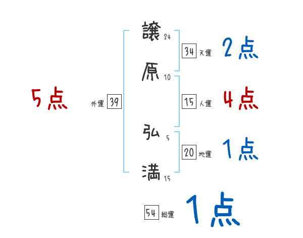 譲原弘満さんの画数の鑑定結果