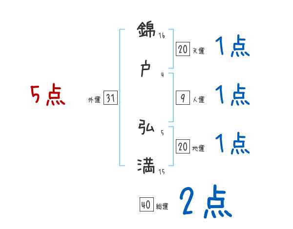 外運![]() | 錦戸弘満さんの外運は31画の5つ星!社交性があり判断力に優れる。順風満帆な人生で円満な生活。 生活面を象徴する運勢です。外部から受ける影響力を表し、結婚運、家庭運や職場、環境への順応性を表します。 |