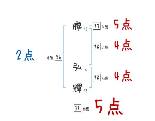 腰弘輝さんの画数の鑑定結果