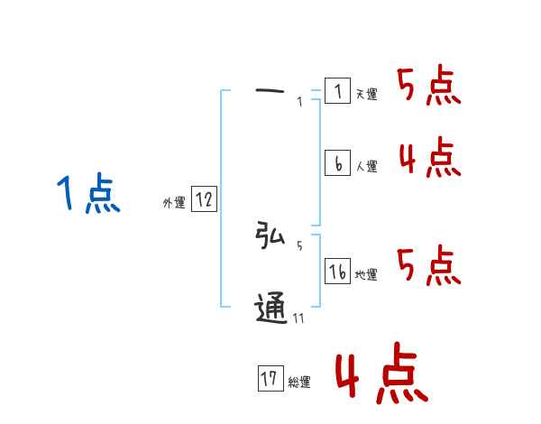 一弘通さんの画数の鑑定結果