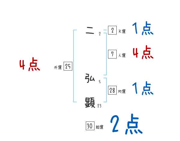二弘顕さんの画数の鑑定結果