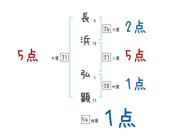 人運![]() | 長浜弘顕さんの人運は23画の5つ星!想像力に優れ活力がある。一代で成功し名誉を手に入れる。 性格や才能などを表す2番目に重要な運勢です。人間関係や協調性、社会的な成功に影響します。主に20歳から50歳ぐらいまでの中年期の運勢を表します。 |
