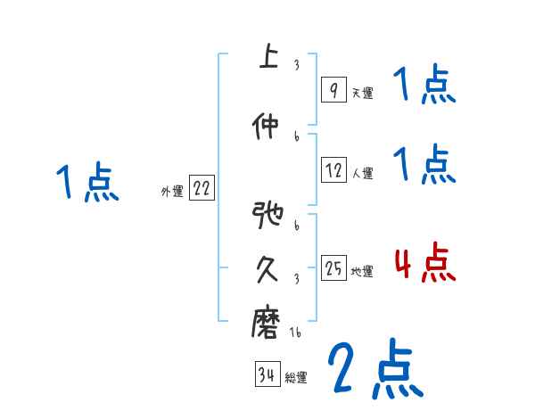 上仲弛久磨さんの画数の鑑定結果